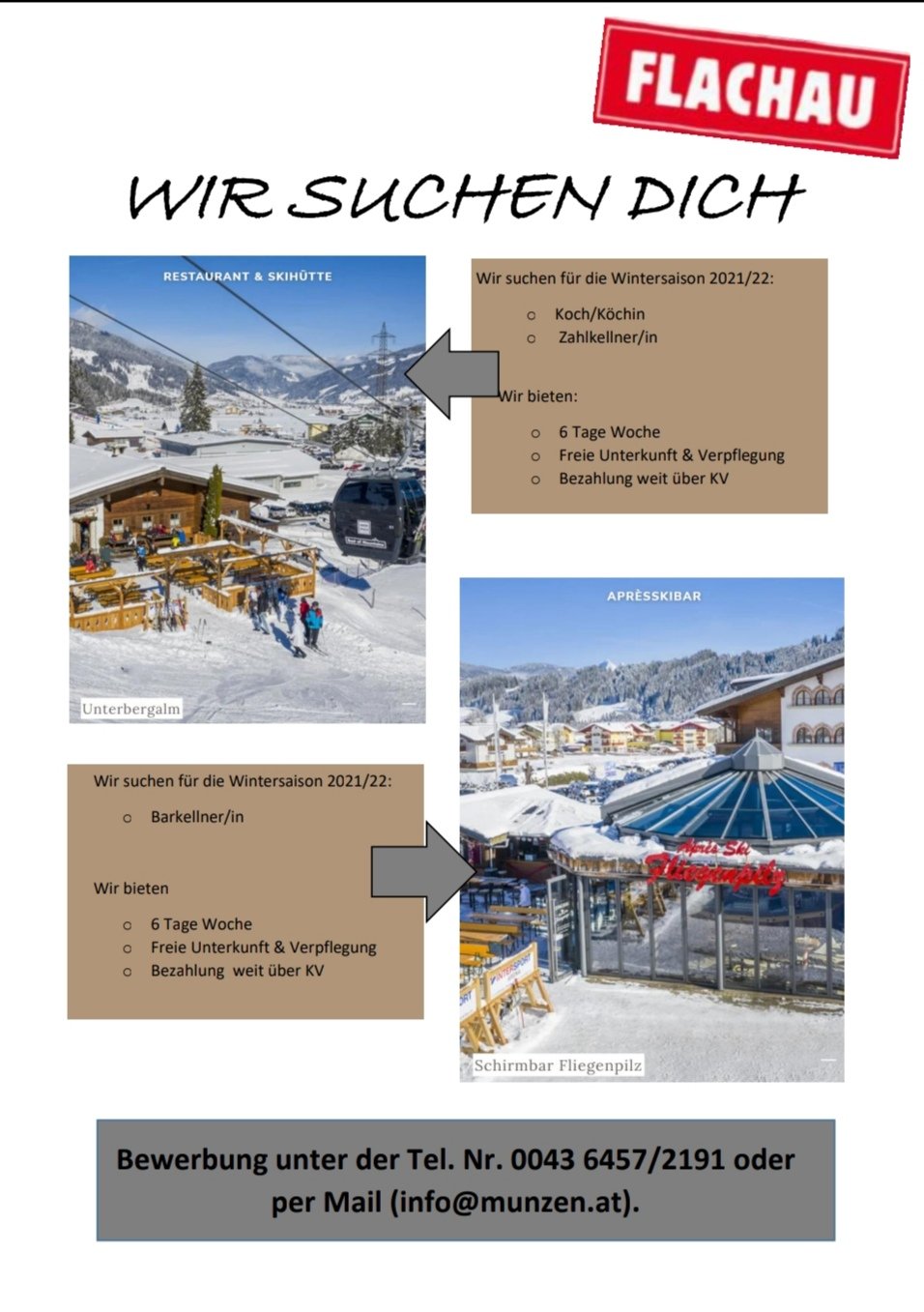 To strengthen our team, we are looking for a reliable kitchen assistant for our ski hut in Flachau from the beginning of Dec. 2025. You can expect a very good salary, as well as free board and lodging (single room). Do not hesitate and apply online now. We look forward to hearing from you!